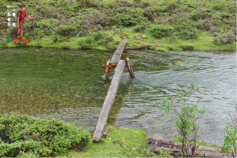 14:00又到达一小木桥处,这里海拔4170米,离下方的湖岸约500米,离拐弯路口约1000米。