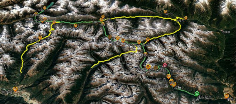 下图绿色线即为本次穿越线路,即念青东看海B线: