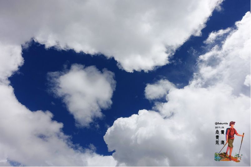 在垭口下方不远处碰到一男一女两个牧民,各自背着一个小包,是从桑通牧场过来去挖虫草的。走过一段小缓坡后,他们朝着我来时的方向走下去。