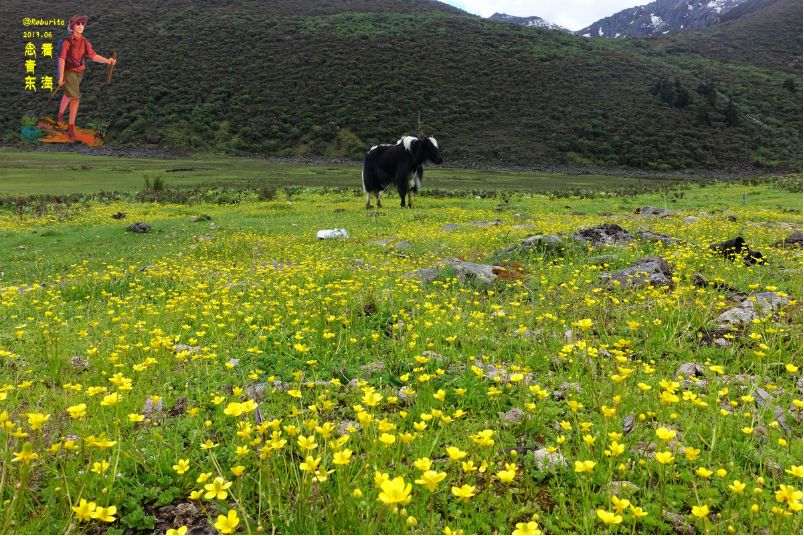 朗莫措的西岸是一片宽广的牧场,草地上开满了黄色的毛茛。
