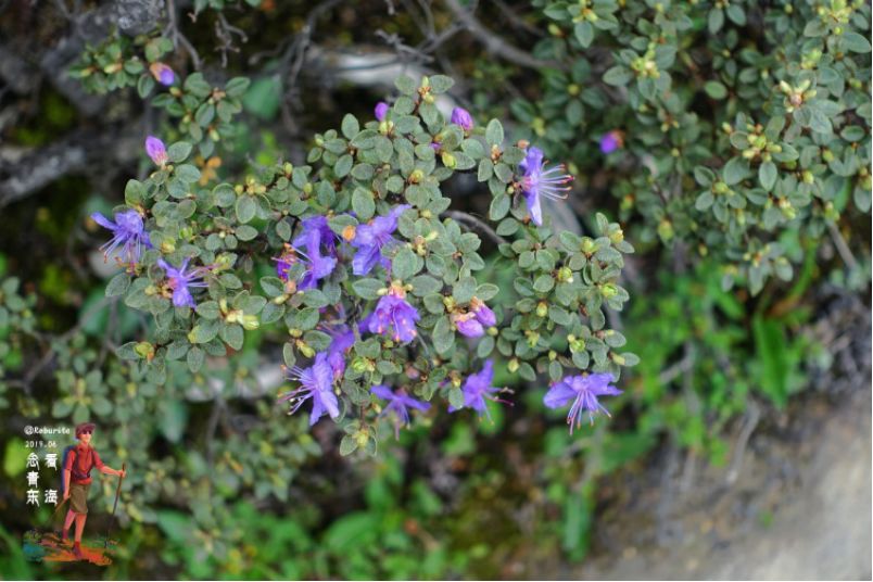 过桥之后继续前行,沿途有紫色的小杜鹃。