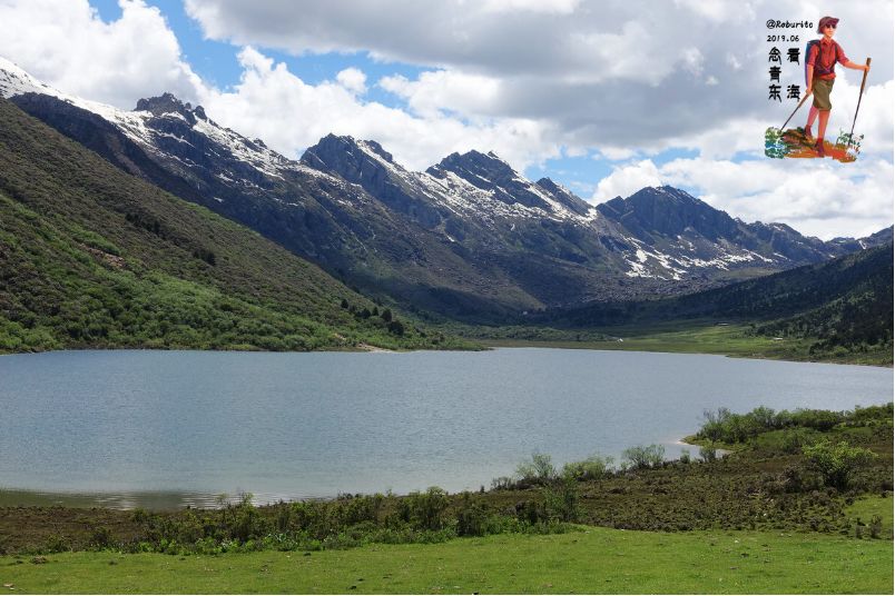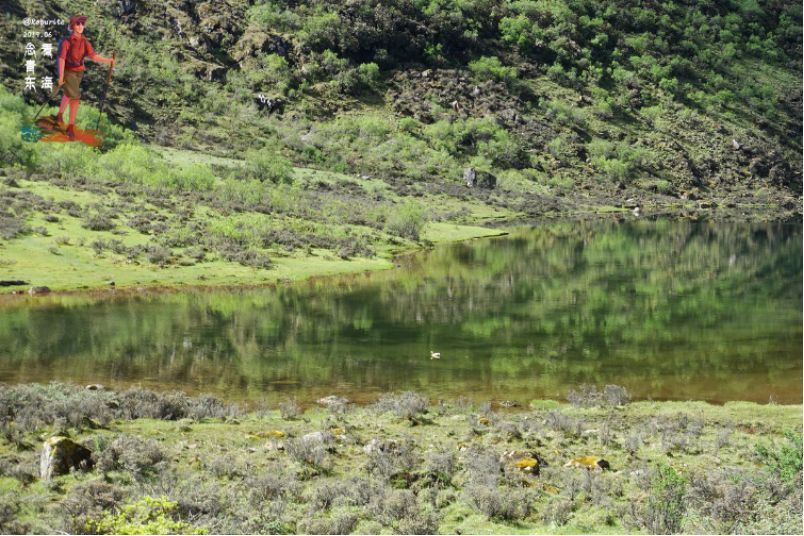 过沼泽之后,一段草坡爬上去,达日措就出现在眼前。