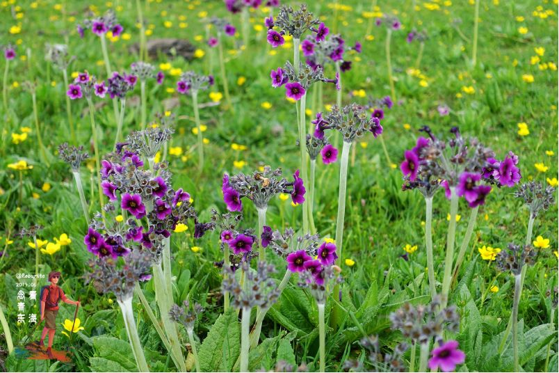 14:33抵达娘约措南岸牧场,在这里避了场雨。这片牧场可谓是鲜花满地,主体是黄色的毛茛,但更夺人眼球的是那些紫色的报春花。