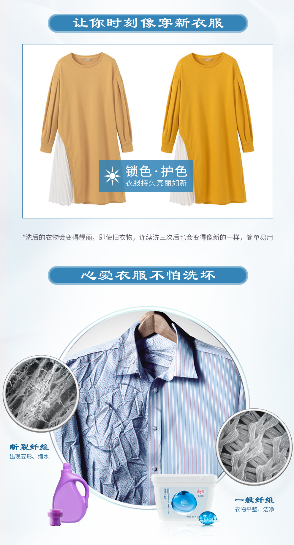洗衣不变形,锁色还原衣服本来的颜色!使衣物柔顺!保护衣服纤维不受破坏!