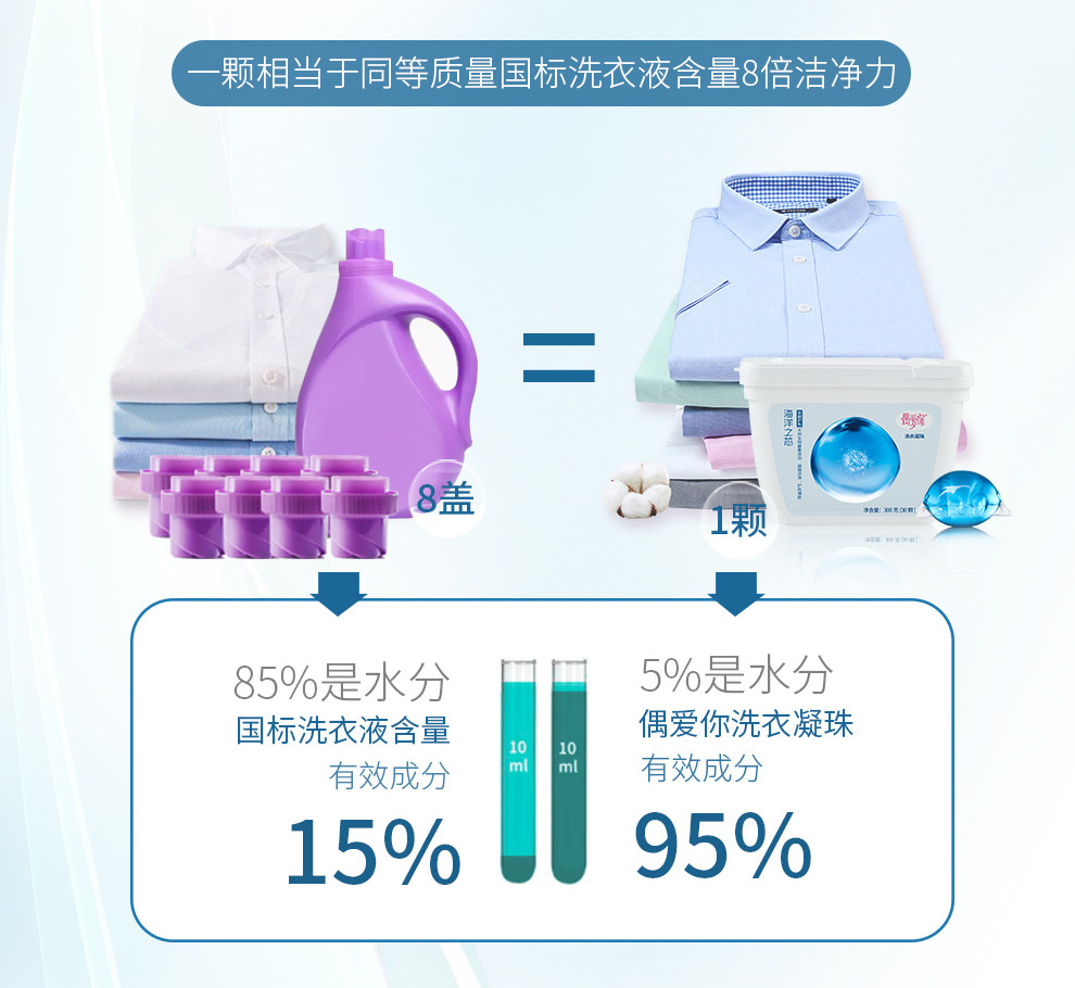 透亮,洁净!轻柔这就是偶爱你洗衣凝珠的魅力!只用小小一粒就能迸发超强的洁净力!