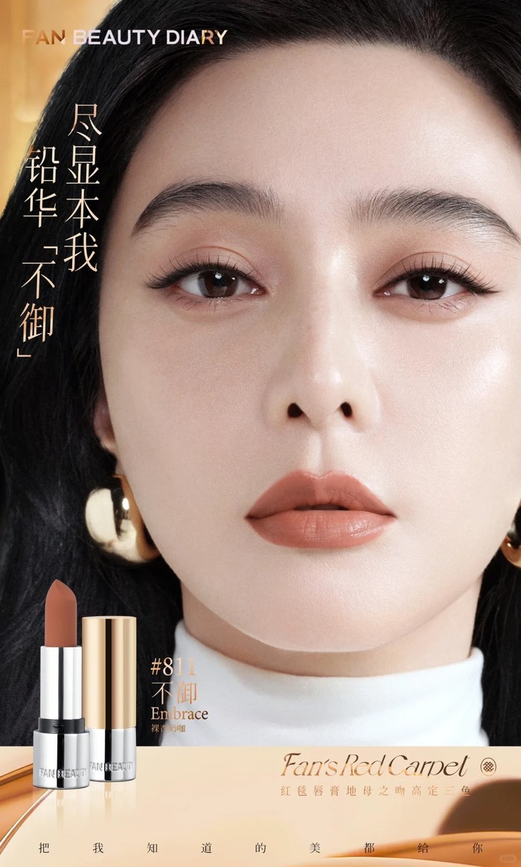 “铅华洗净,珠玑不御”。素净装扮仍不掩气质出尘,强大的内核允许一切发生。全新#FanBeauty红毯唇膏 Embrace #811不御 以更贴合亚洲肌肤的裸杏奶咖色,释放松弛亦有力的自然原生感氛围。