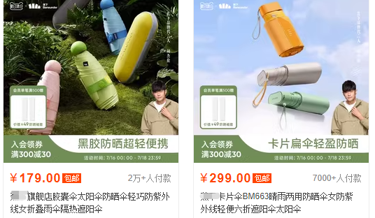 像这样高品质的晴雨两用伞,旗舰店日常价都要168: