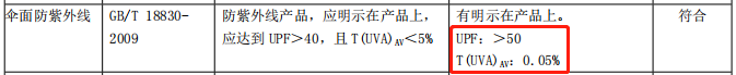 而这把伞的UPF大于50,UVA仅为0.05%,远超国家标准!