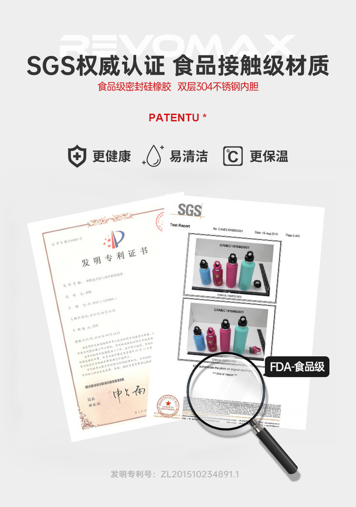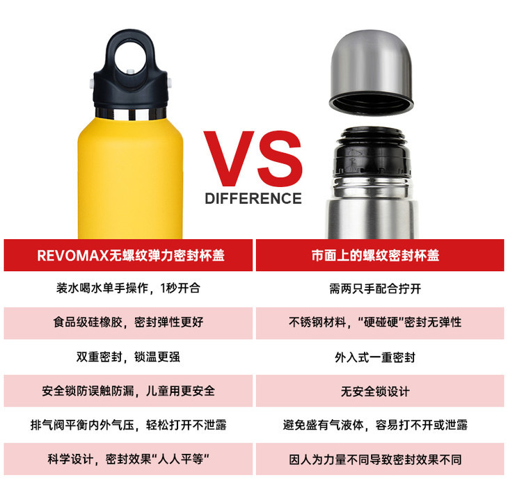 而Revomax无螺旋保温杯,开合瓶盖无需来回拧,单手操作,一秒即可开合,运动、开车、上学,简直不要太便捷!