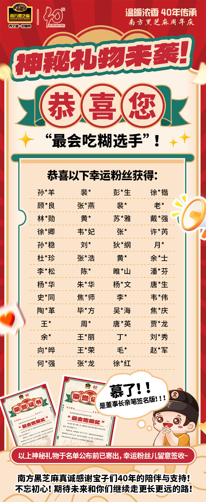 恭喜您!一起来看看【最会吃糊选手】幸运儿名单吧~