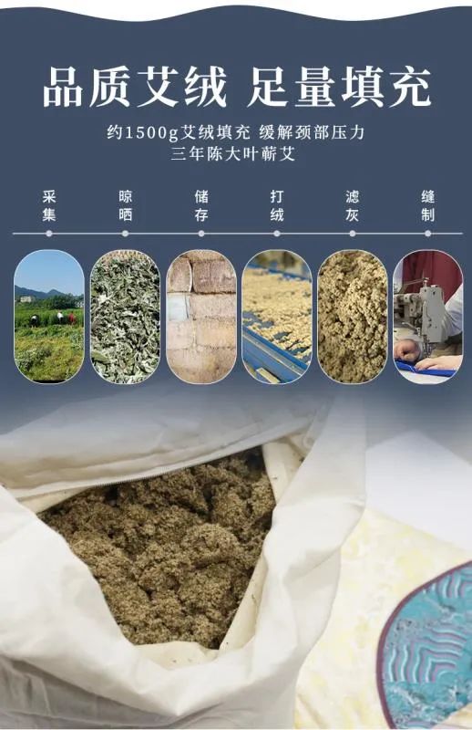 艾绒枕缓慢释放挥发油,吸入后,感觉每一根大脑神经末梢都得到了放松。