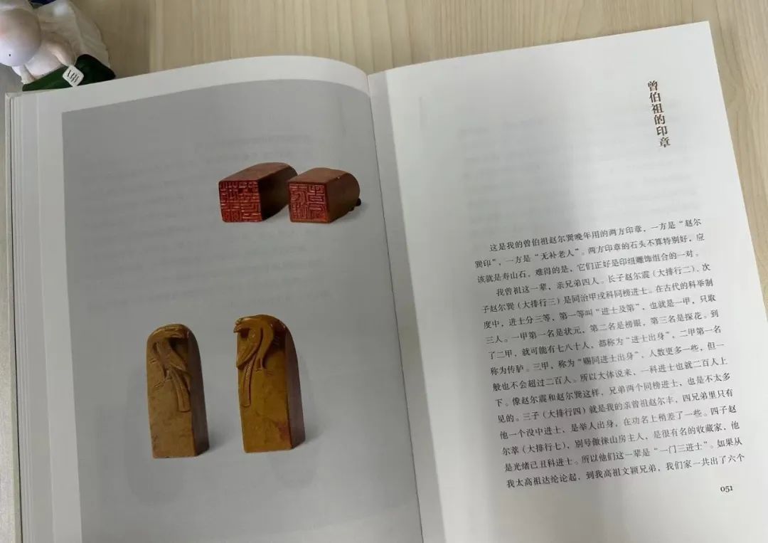 从我的太高祖开始,出了三代进士,即太高祖达纶,高祖辈的文颖、文起兄弟,曾祖辈的尔震、尔巽、尔萃兄弟,我的亲曾祖尔丰虽非进士出身,也做到署理四川总督兼驻藏大臣,于是才有了“ 一门六进士,弟兄两总督”之声誉。其实, 书中所收录的“ 小物”多已与我的家族无关了。