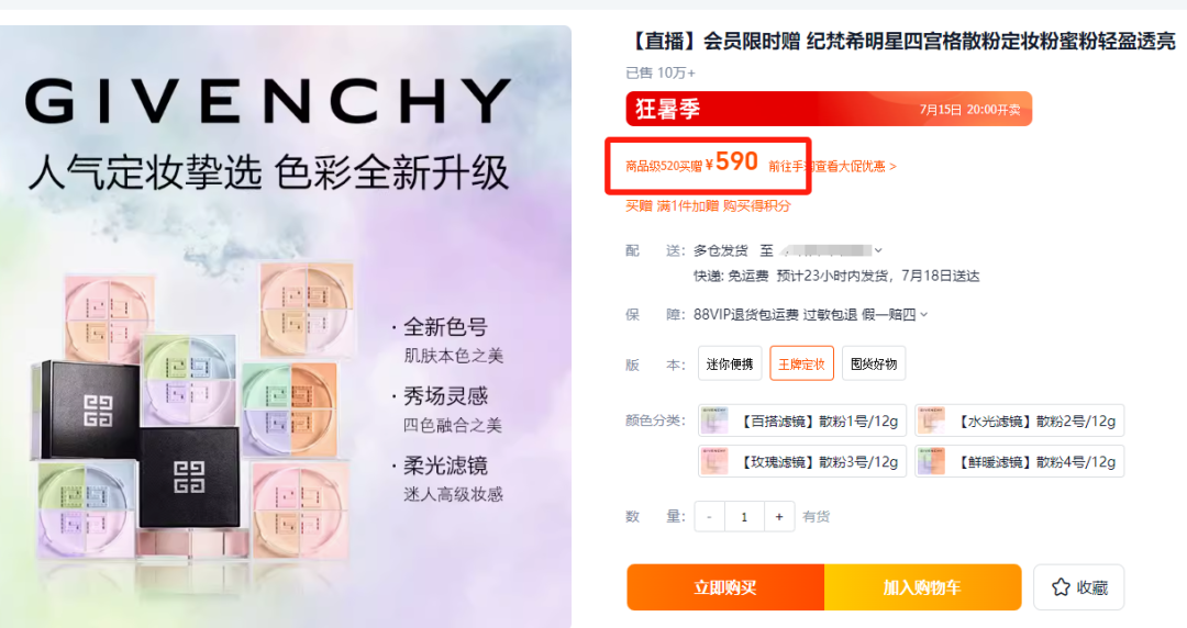 买一送一!纪梵希四宫格只要299元!“散粉大佬”5折限量抢!