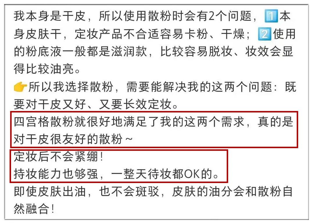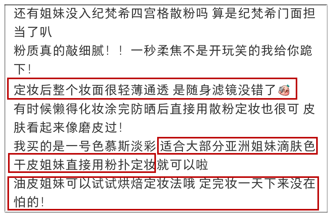 除了控油定妆外,跟其他散粉相比,纪梵希四宫格散粉隐藏毛孔、遮瑕、修饰泛红皮肤等效果同样感人。