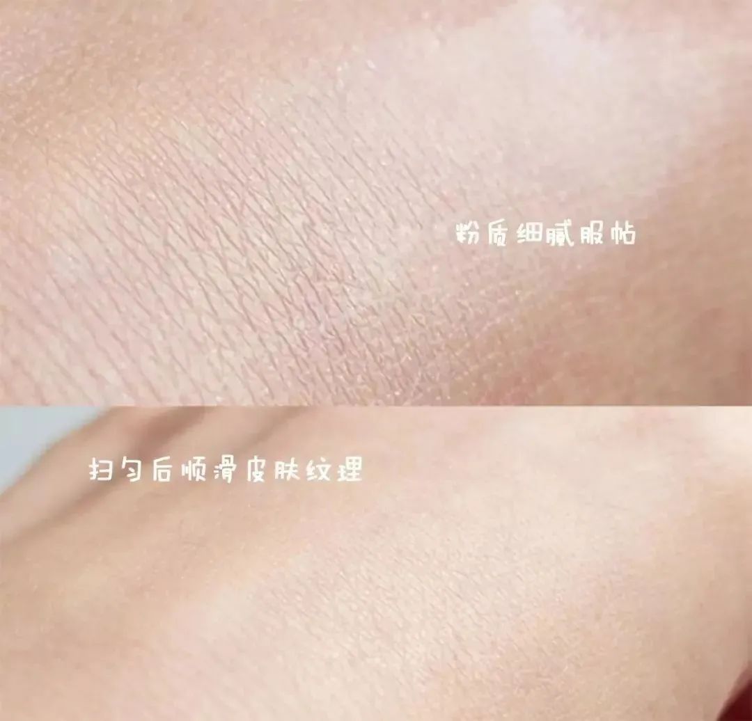即便是肌肤油腻、肉眼可见粗大毛孔的情况下,直接扫上四宫格散粉,油光立马不见,毛孔也被隐藏起来,整个肌肤会呈现出哑光状态。