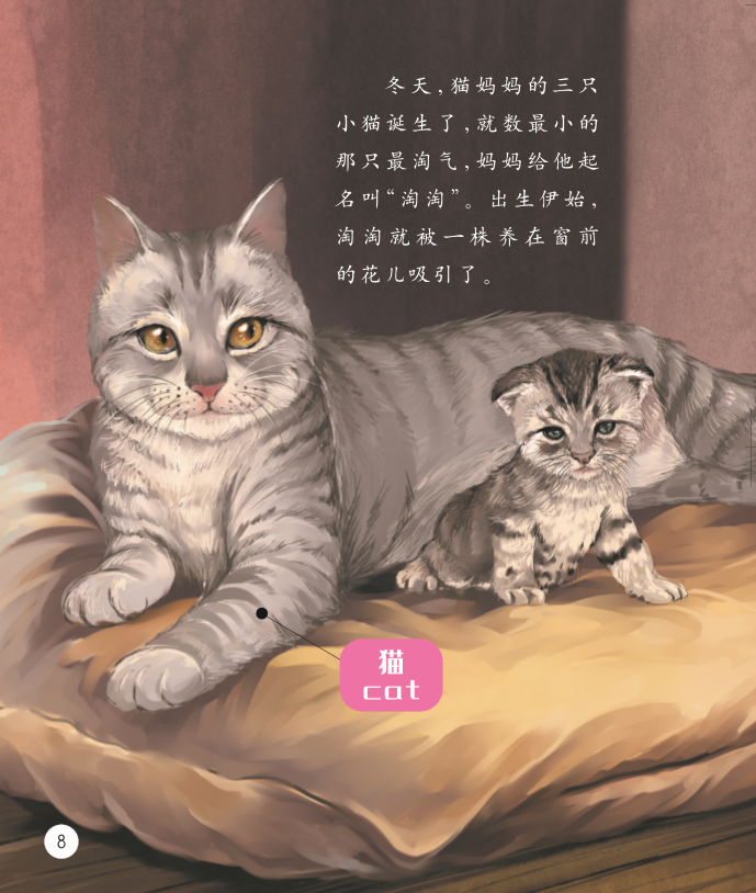先看看这精美的手绘插图,栩栩如生,甚至连小动物的毛发都清晰可见,很有视觉冲击力,一下就能抓住孩子们的眼球。