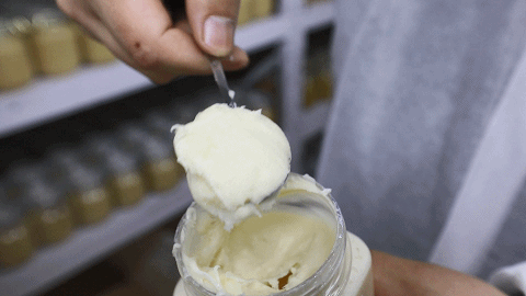结晶后的椴树蜜是乳白色的,凝如羊脂,闻起来还有一股淡淡的椴树花香,清新自然,非常治愈。可以直接用勺子舀着吃,清甜不腻。吃起来像雪糕一样,入口即化,细腻绵软。