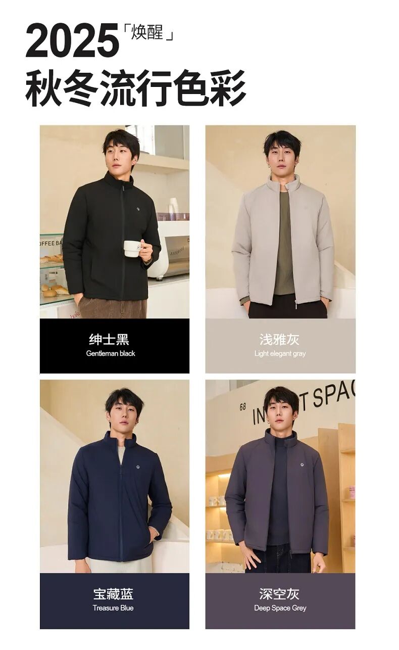 男款:人体工学裁剪,简约立领,正肩休闲版型,宽松更舒适,包容身形。
