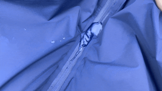 三防面料防泼水性能优越,水落在上面就像雨落在荷叶上一样流动不会渗入。