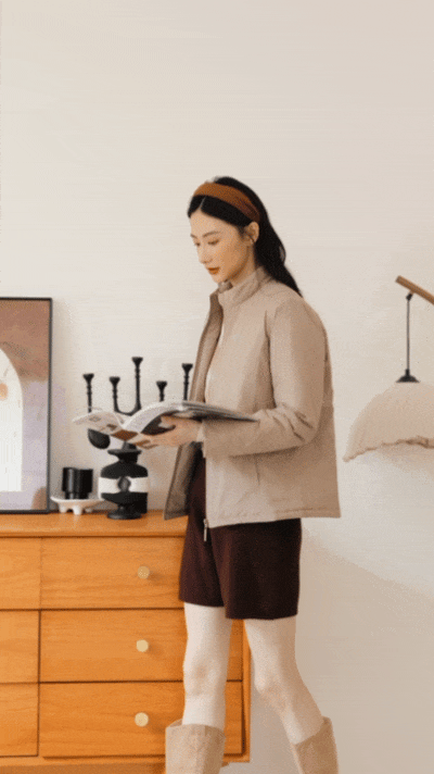 上身完全不会臃肿,秋冬行动更轻松方便,即便穿到户外去运动也很舒适。