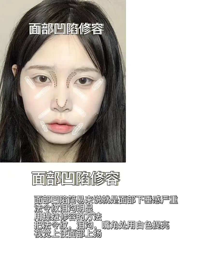 这个修容就是提升面部,用提亮法让面部拉升,增加幼态感