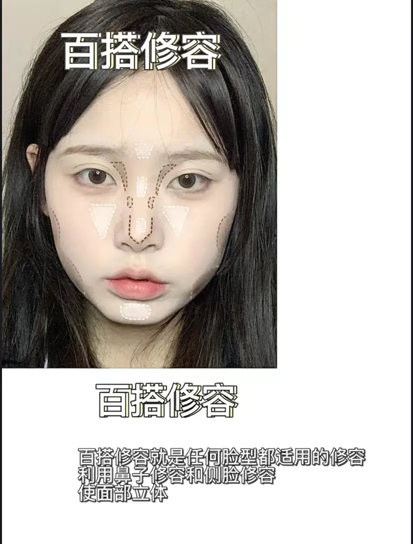 这个修容就是非常日常,适合于各种类型妆容,不知道自己是什么脸型的都可以用这种方法