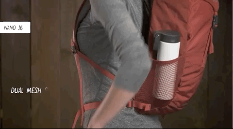 当你在徒步登山时,随手要用的垃圾袋、能量胶、水杯零食等可以放在这样伸手可及的地方。