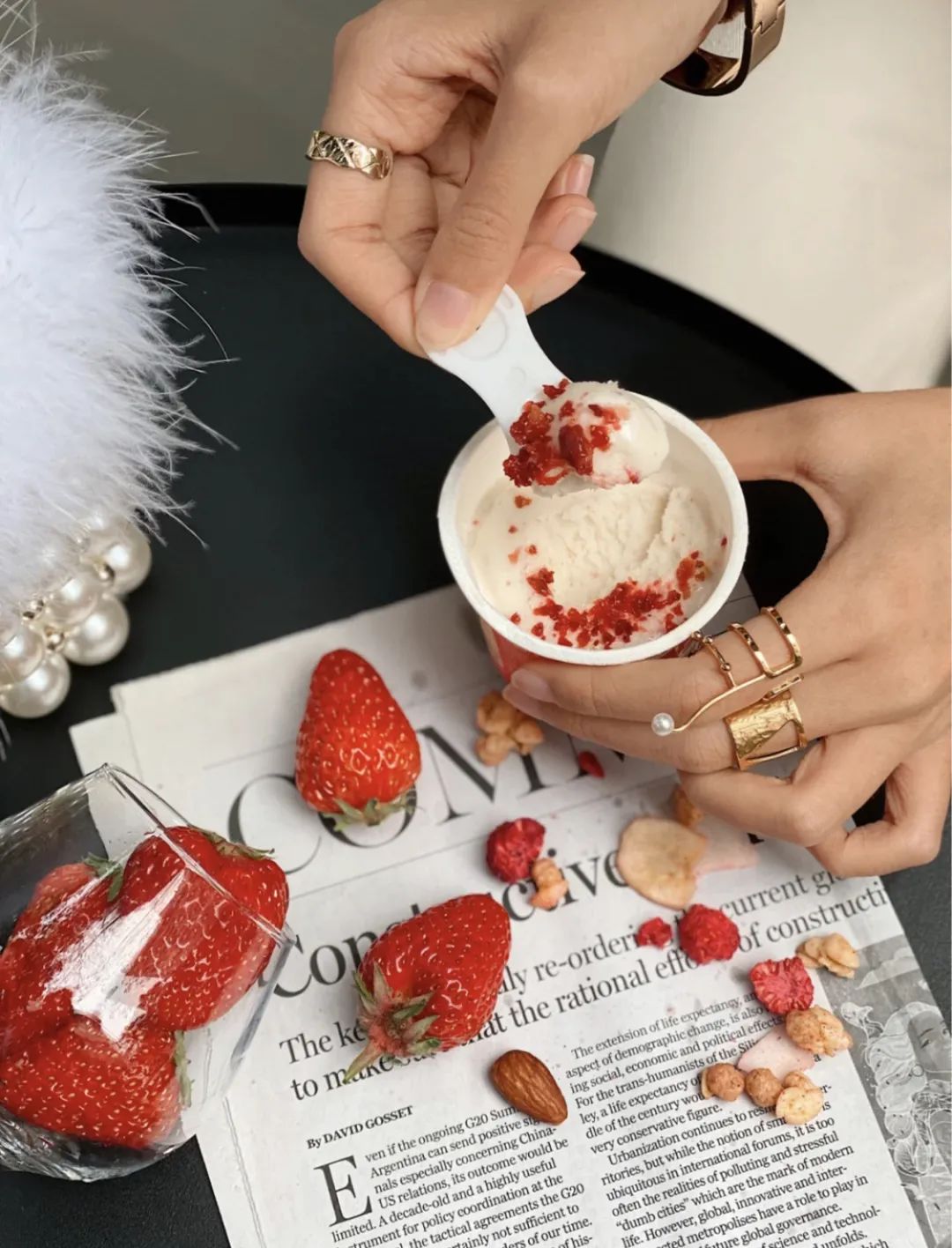 挖起一勺,就是满满的草莓大果粒。