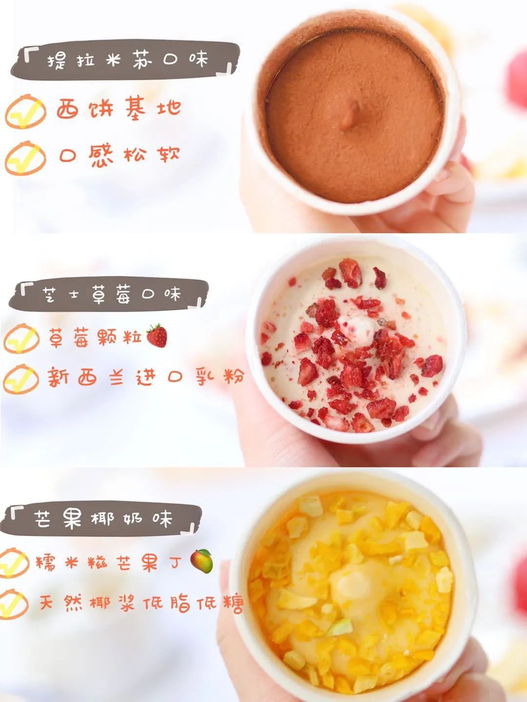 杜绝蔗糖,色素,用纯天然原料打造口味不单一的低卡冰淇淋。