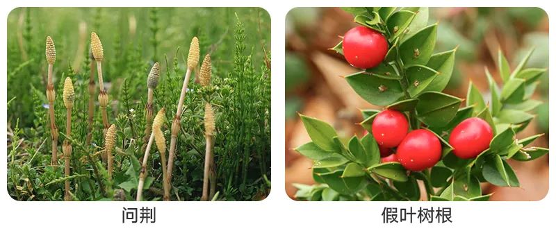 问荆、假叶树根。
