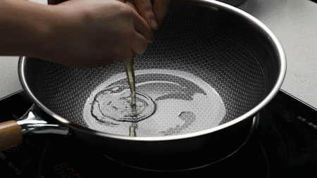 烹炒时,间隙之间连成薄薄的水油膜,大大阻隔了食材与锅面接触面积,通过物理原理,实力抗粘。