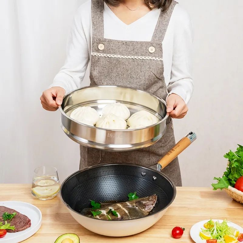 物理抗粘、不生锈、不变色、不挑锅铲......颜值、实力双双在线的荷叶不锈钢炒锅,家家户户都适用。