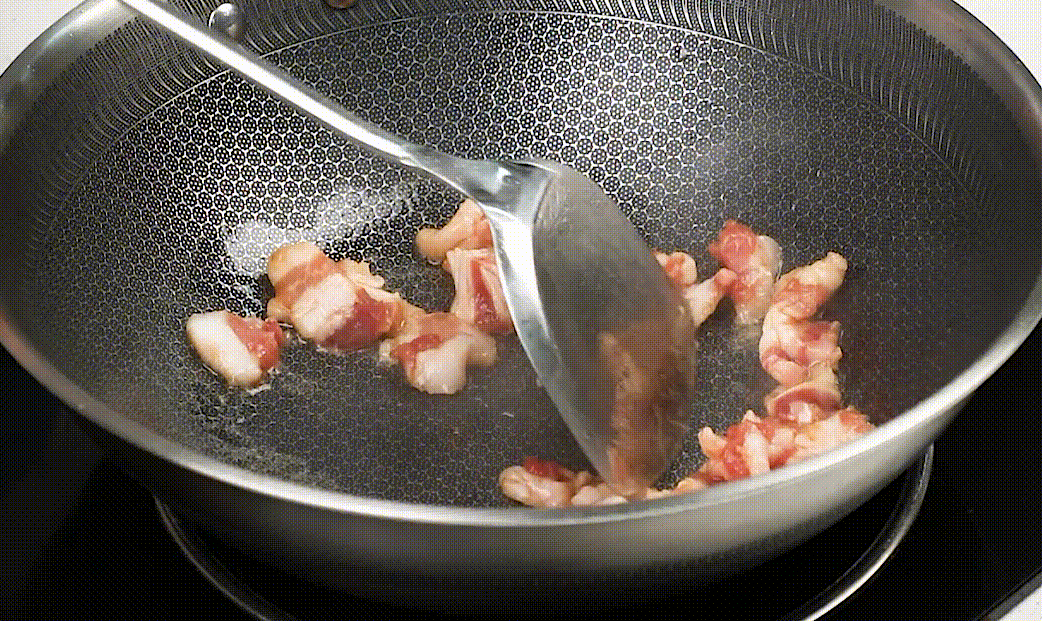 2. 烹炒高淀粉食材,注意控制中小火且保证锅底有油;