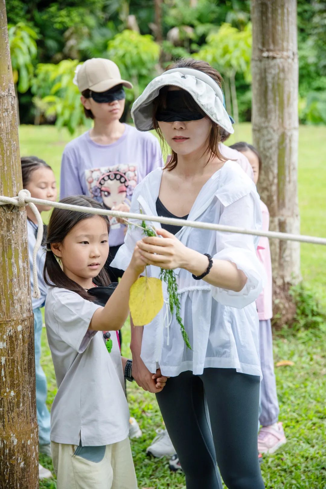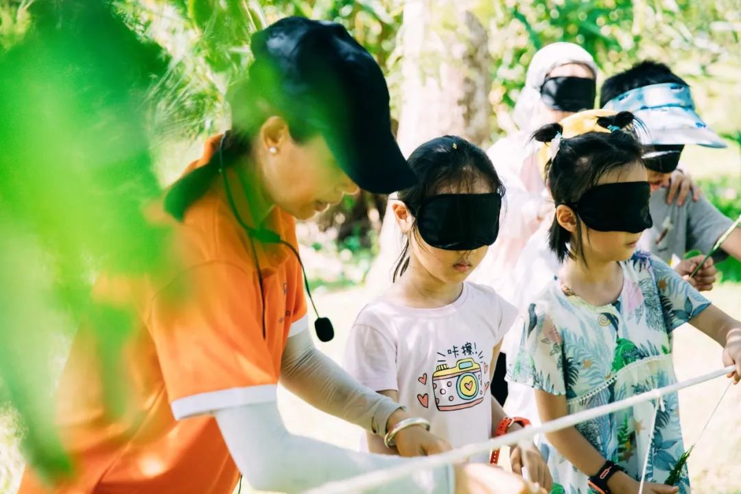 最先进行的便是一场新奇的“亲子闻香之旅”,这是我们和中科院植物园研学团队共创的特别体验课程:大朋友们将蒙上眼睛像毛毛虫一样探索气味植物,在这个过程里和自家的小朋友默契合作,通过肢体“暗号”来保持前进方向的正确和脚下每一步的安全。