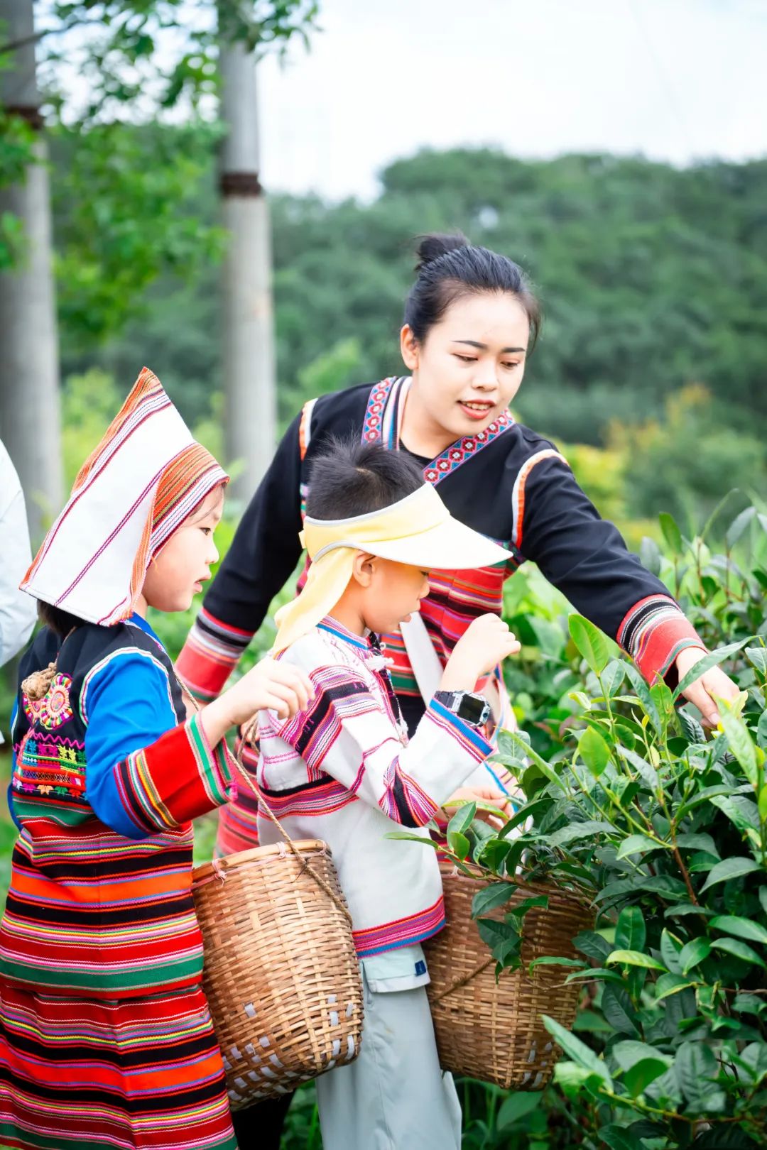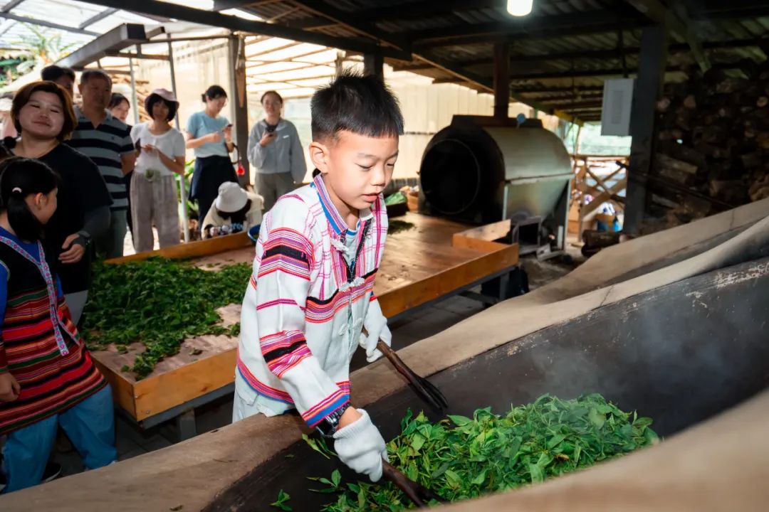 我们会进入茶山亲手采摘新鲜茶叶,体验传统炒茶的过程,和爸爸妈妈们一起手绘、压制一块属于自己的普洱茶饼,感受基诺族人民对茶的热爱和对生活的独特理解。