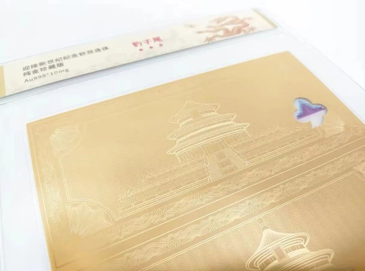 这套纯金版纪念钞与原钞图样一致,是为了迎接2024甲辰龙年而发行的。该藏品经由中国人民银行行政许可图样使用,以10mg999足金为载体,传承了“千禧龙钞”的重大意义,也是对盛世龙年zui~好的献礼!