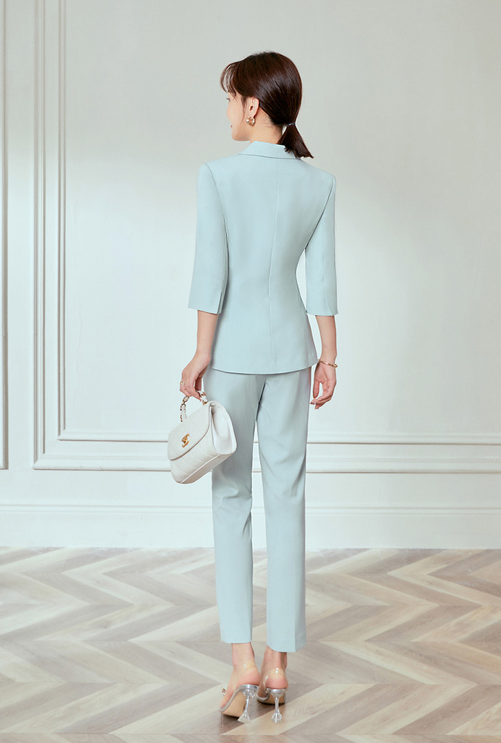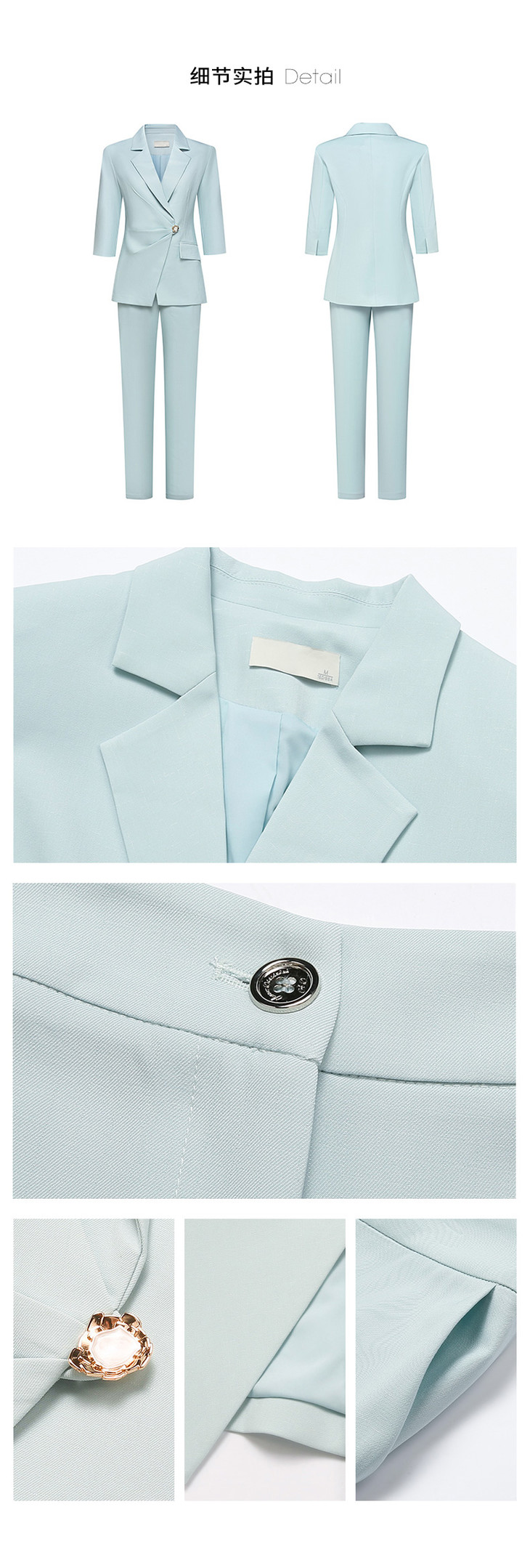 腰间褶皱设计,使整体具有层次感一粒扣收腰