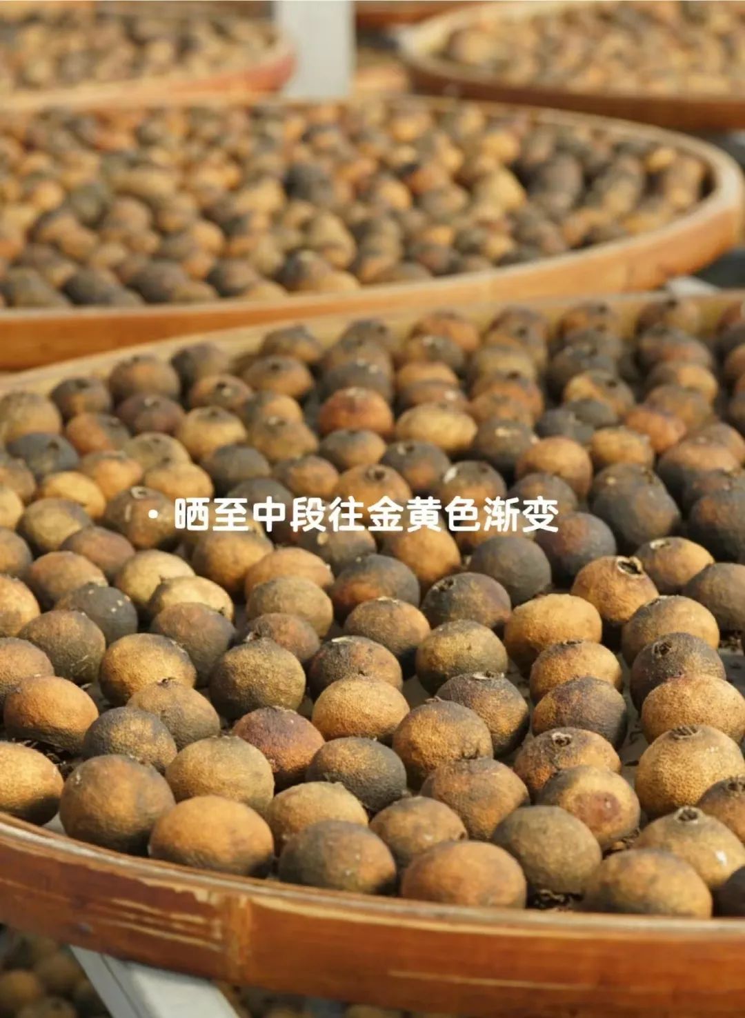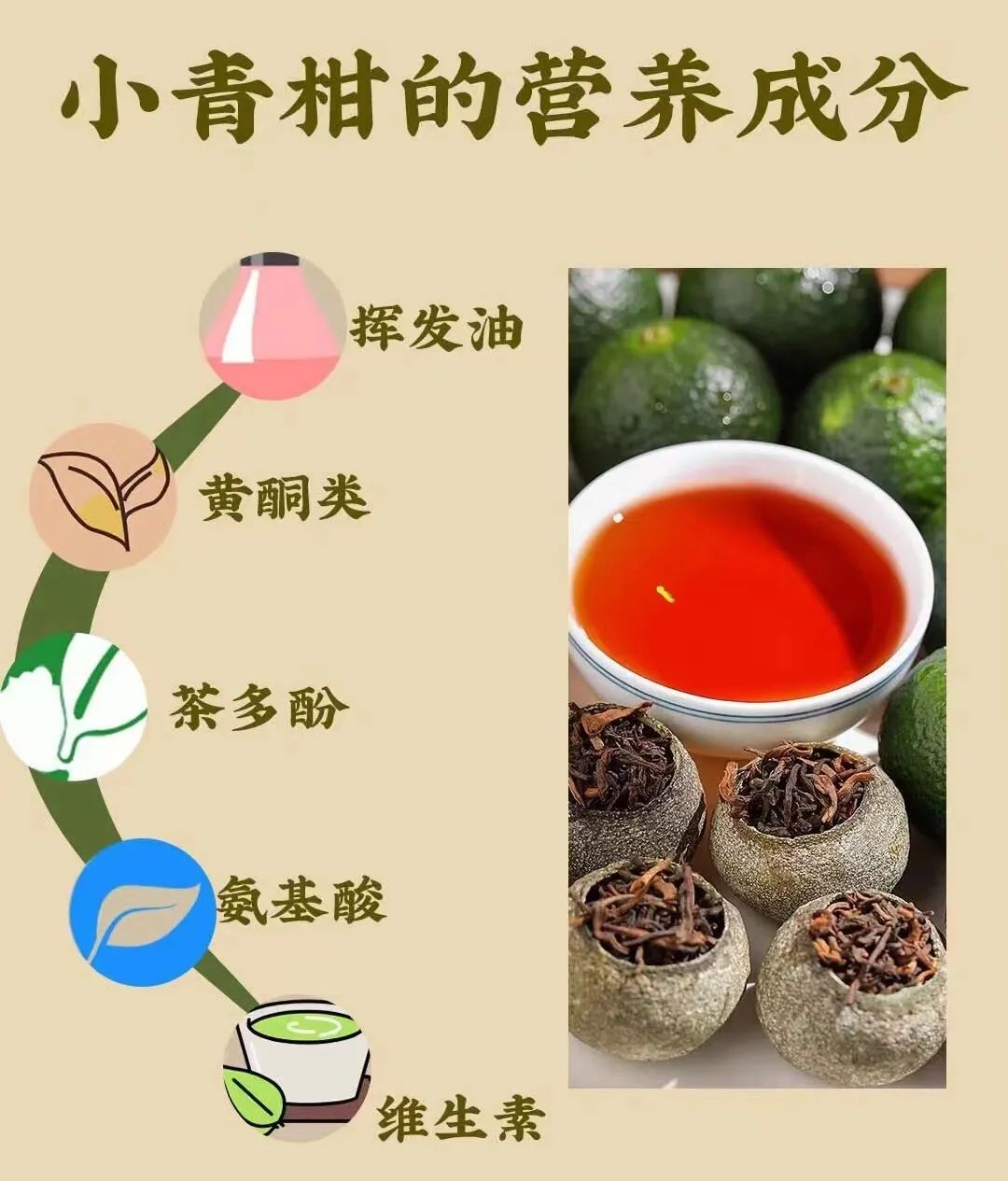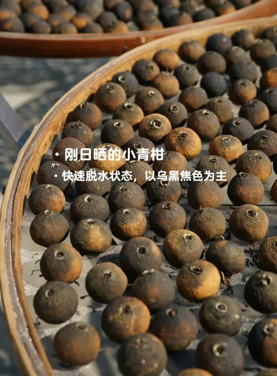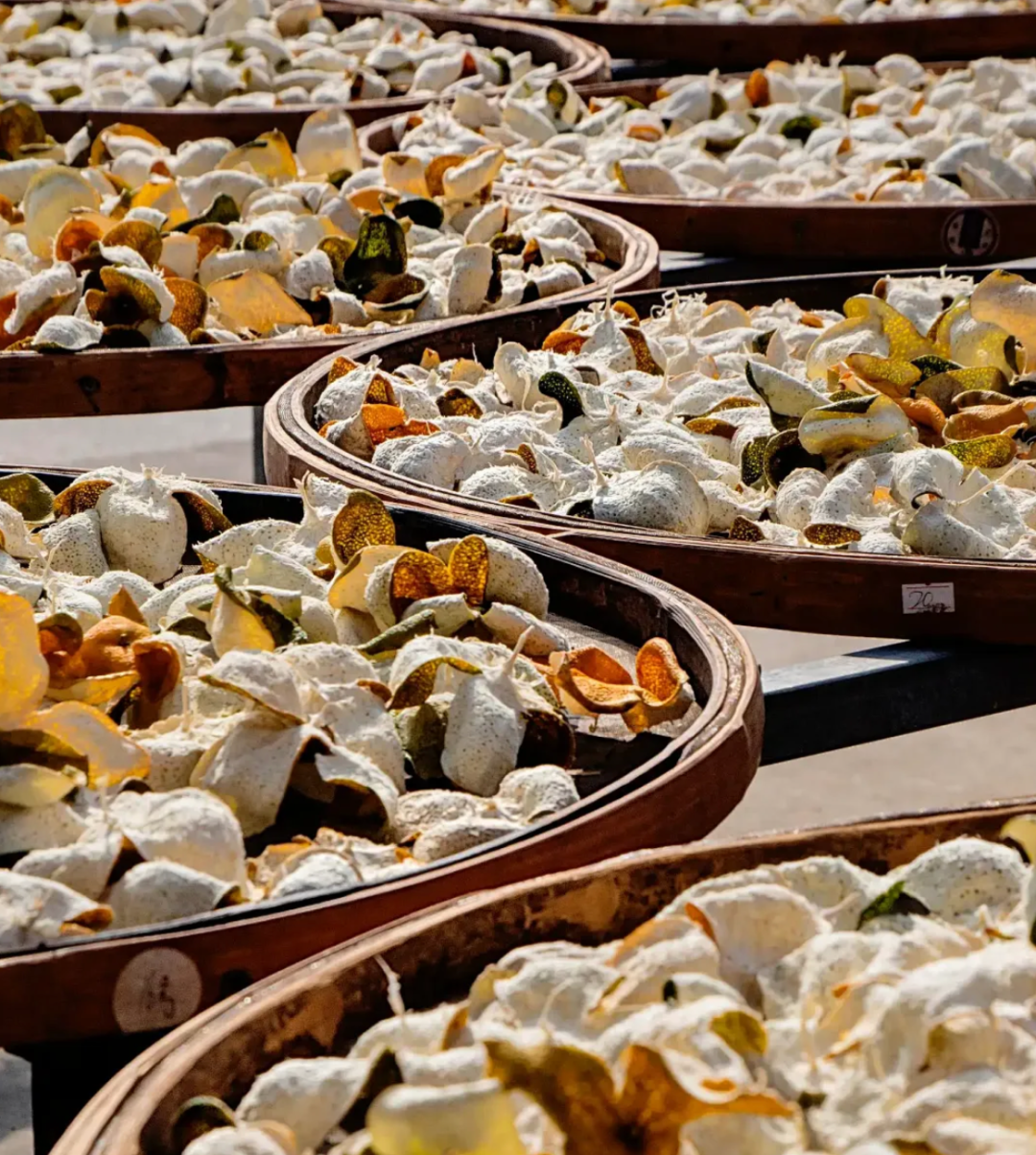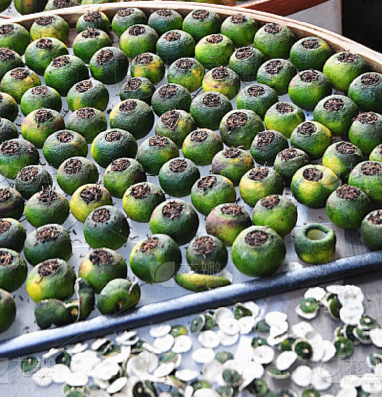 经过长时间日晒的小青柑,柑皮中的黄酮和川陈皮素被ji活
