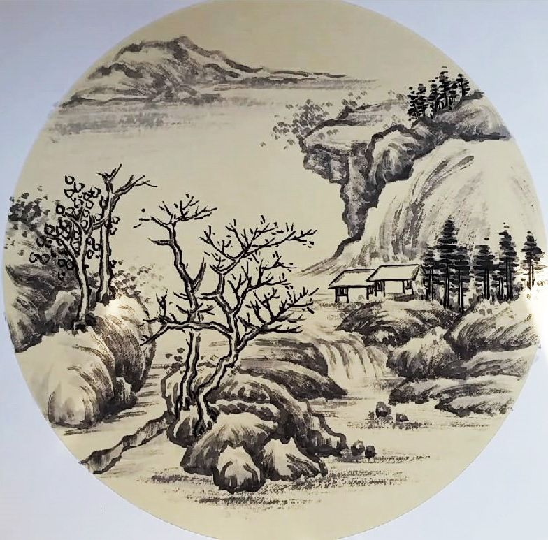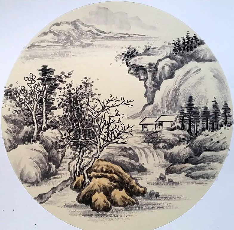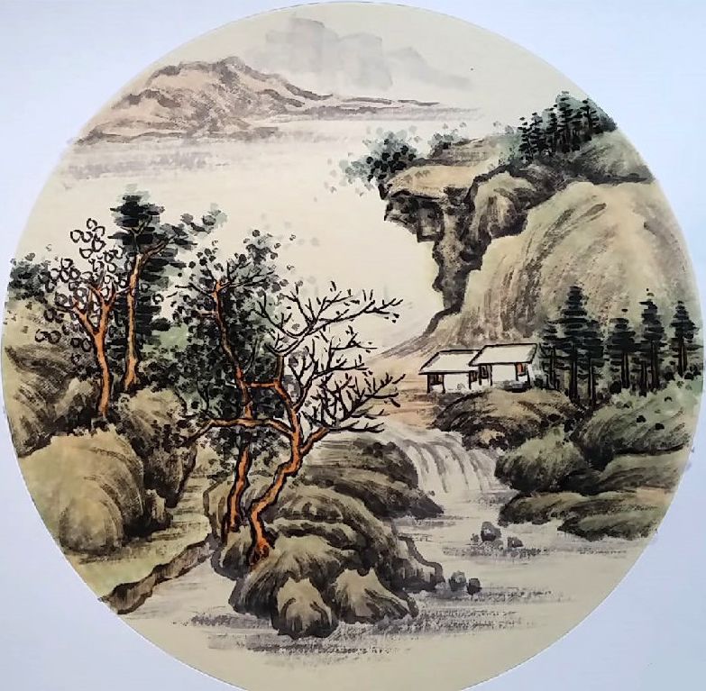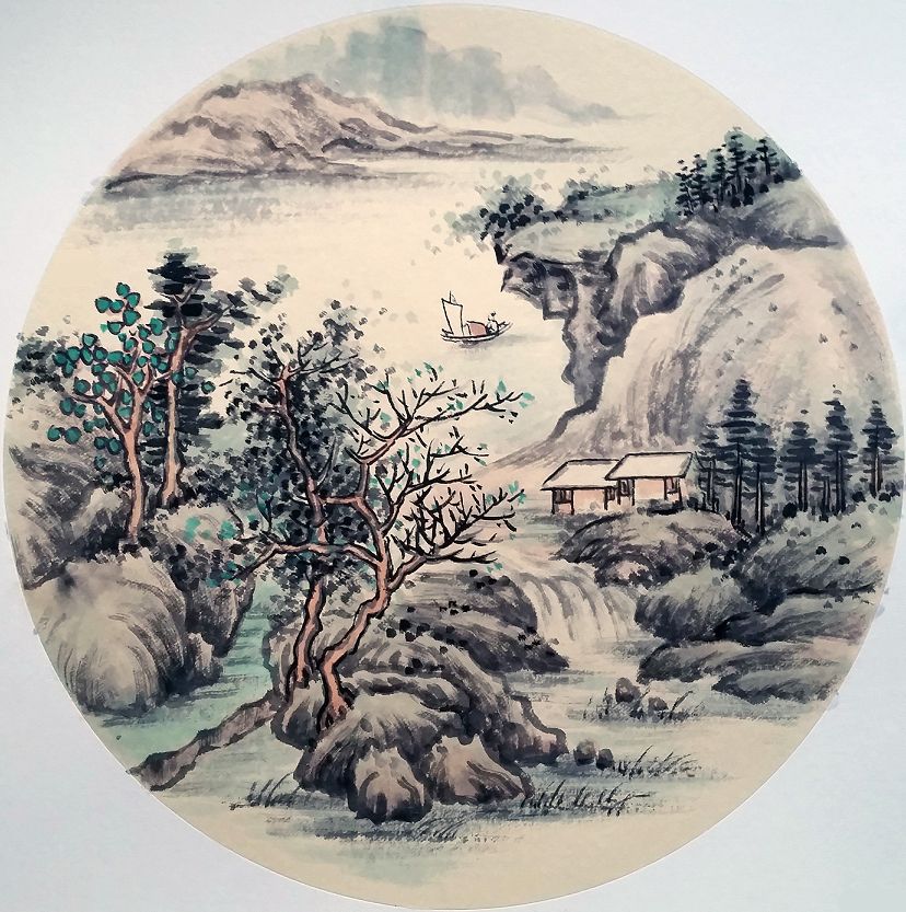 山水画蕴含着以山为德、水为性的内在修为意识,蕴含着中国一些古代文人愿远离官场,纵情于山水之间的传统精神。中国山水画除了有美的追求外,更高层次是“天人合一”。