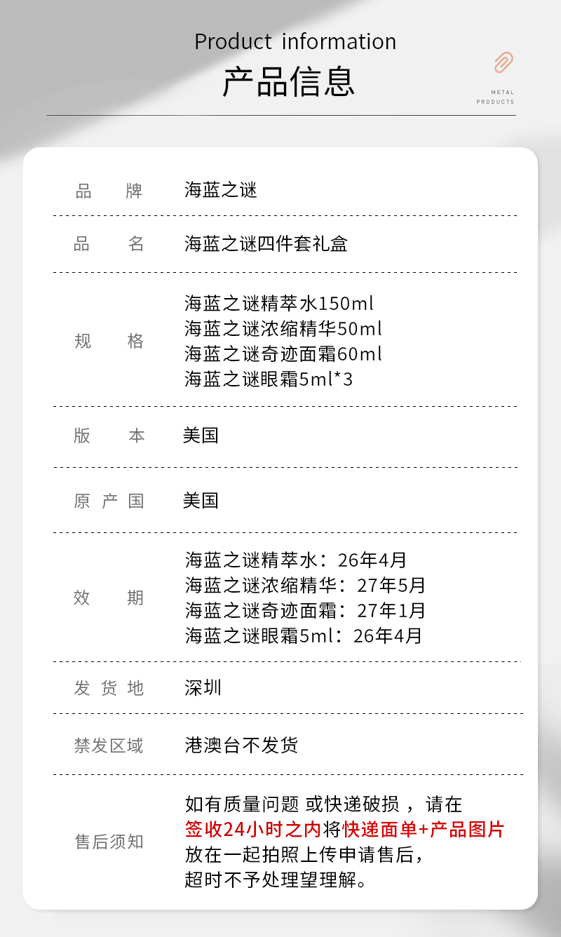 不用再费心搭配,这套礼盒把海蓝之谜的“扛把子”全都装进去了,从补水打底到修护抗老,从脸蛋到眼周,一步到位解决多种肌肤问题: