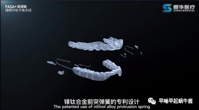 佩戴后,下颌牵引舌体和喉咙附近组织前伸,
