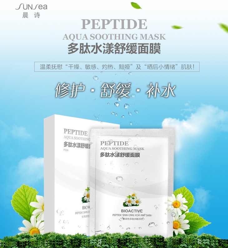 多肽水漾舒缓面膜,富含多肽精华成分,奢养肌肤。瞬间让肌肤喝饱水,改善细纹,柔嫩细致,见证肌肤年轻化。