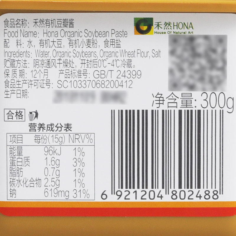禾然有机甄选优质有机原料:有机大豆,有机小麦粉,水,食用盐;