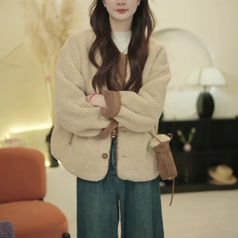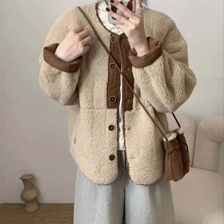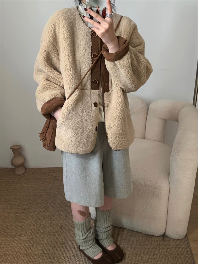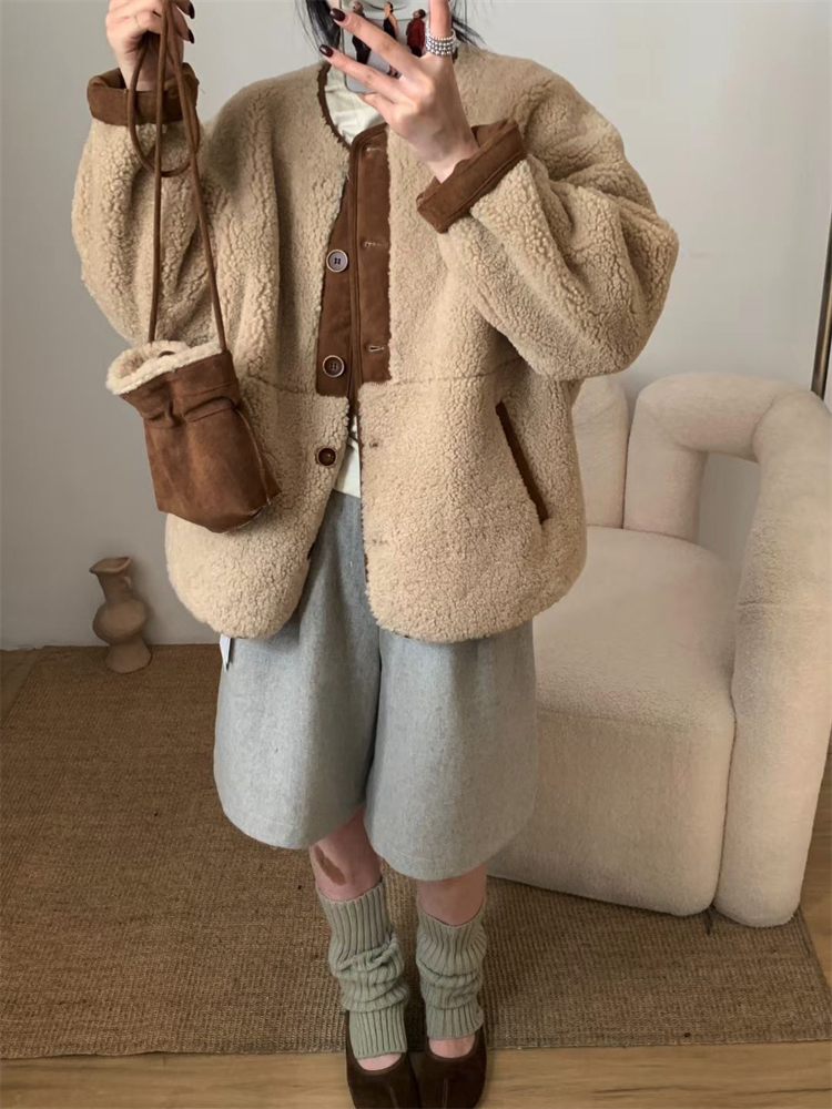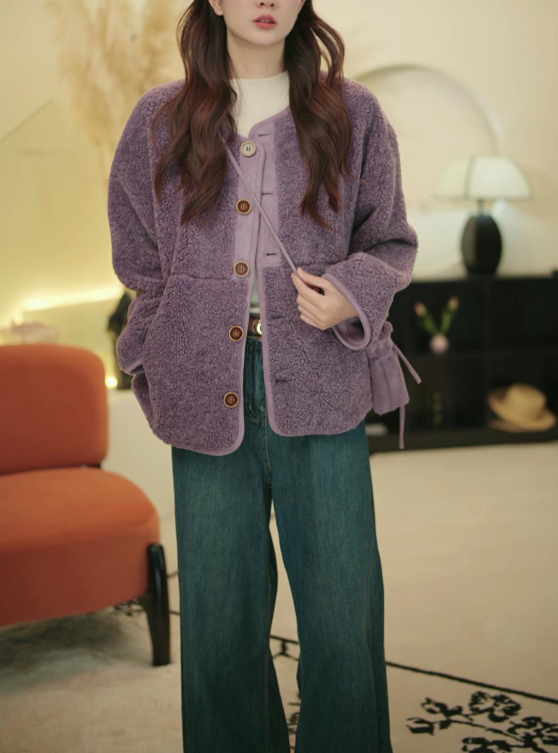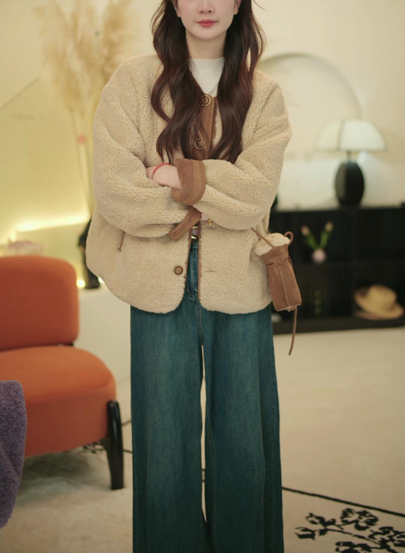 无法抗拒乖乖的一件羊羔毛皮毛一体外套~过年过节穿倍有范!