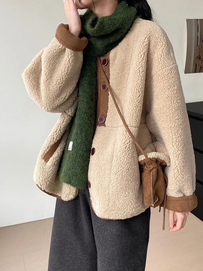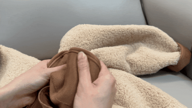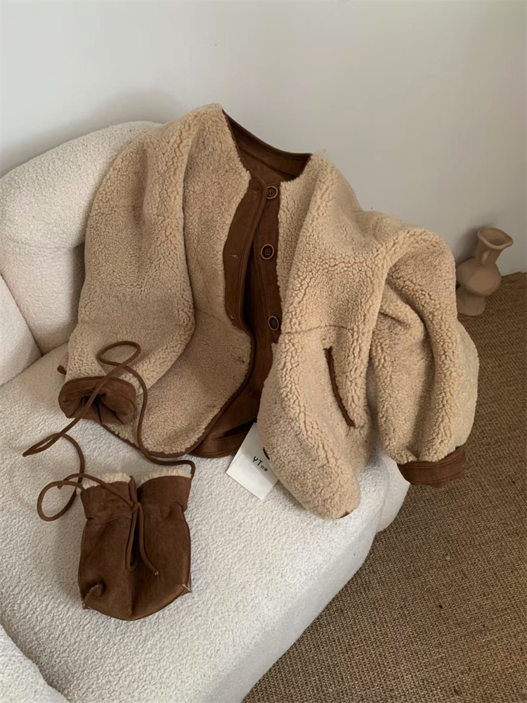 麂皮绒拼羊羔毛,保暖效果堪比棉袄,裹在身上就像一个小毯子一样温暖~