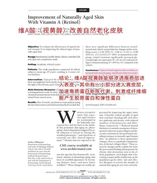 在知名皮肤yi生Leslie Baunann写的《Cosmetic Dermatology》和《The skin type solution》里,视黄醇被誉为有一定减少和防止皱纹的成分。