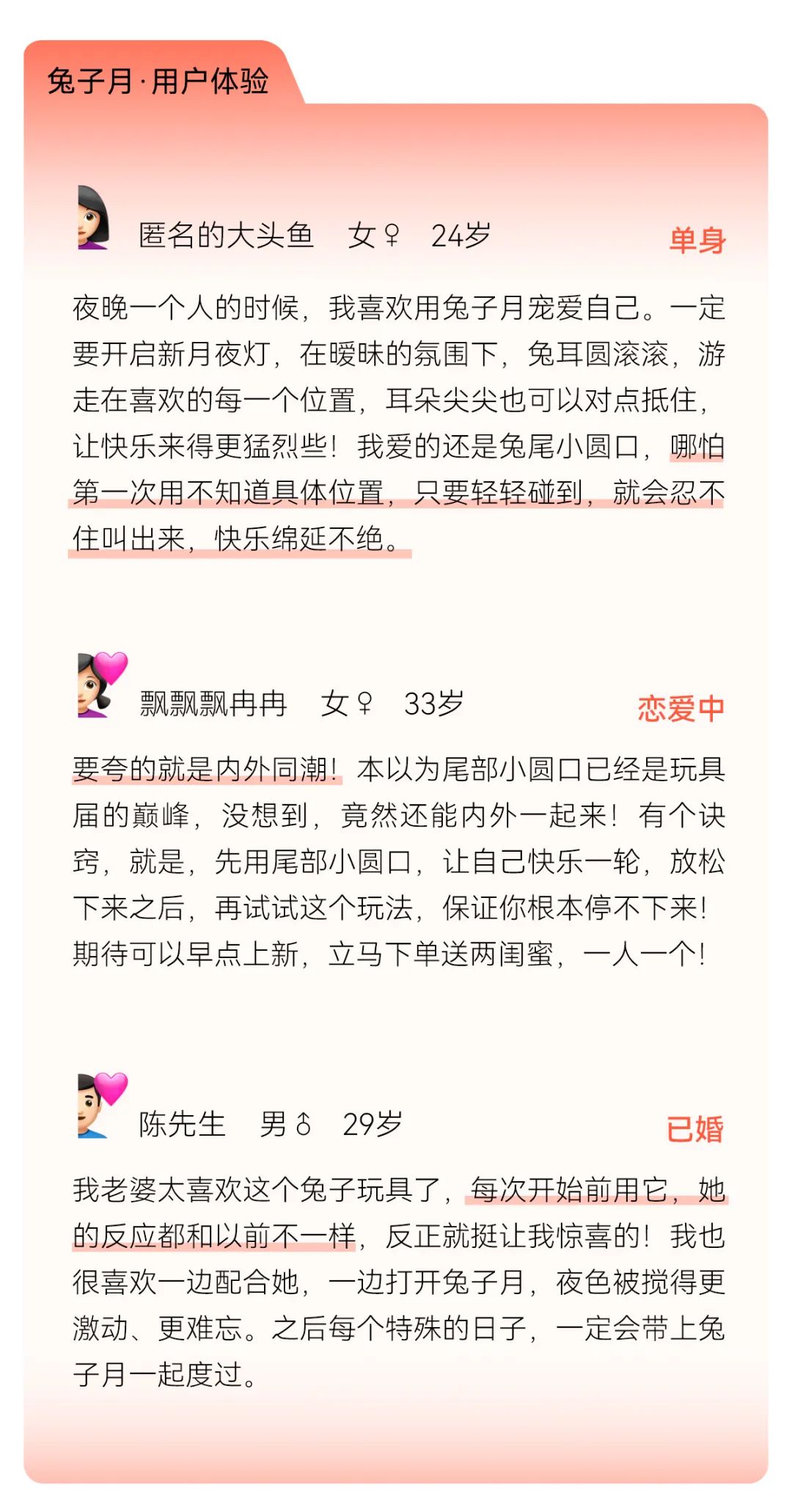 这次我终于体验到了!用完之后我直接感慨:兔子月完全就是一款颠覆行业、颠覆体验的玩具!它给你带来的快乐,超乎你的想象!