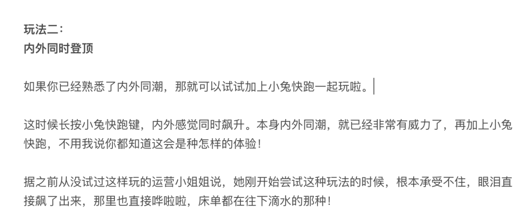 如果你从未体验过内外同潮,我推荐你一定要试试这种让人此生难忘的感觉,甚至不夸张的说,一旦你找到要领,掌握玩法,用一次就回本,不会后悔入了它!