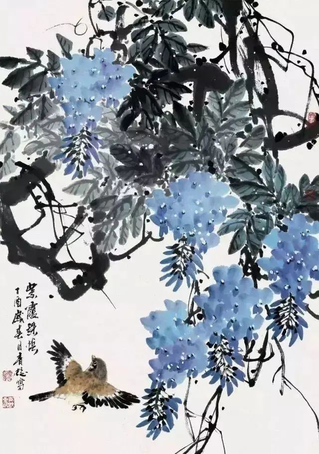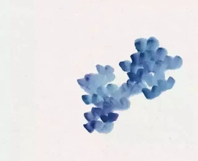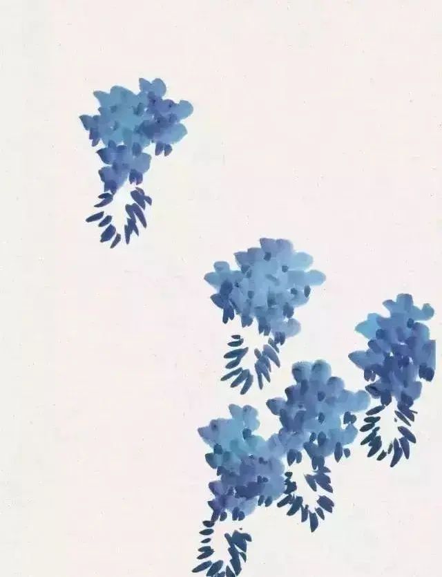 步骤二:笔尖蘸深花青接着画花蕾,调同色续画花簇。