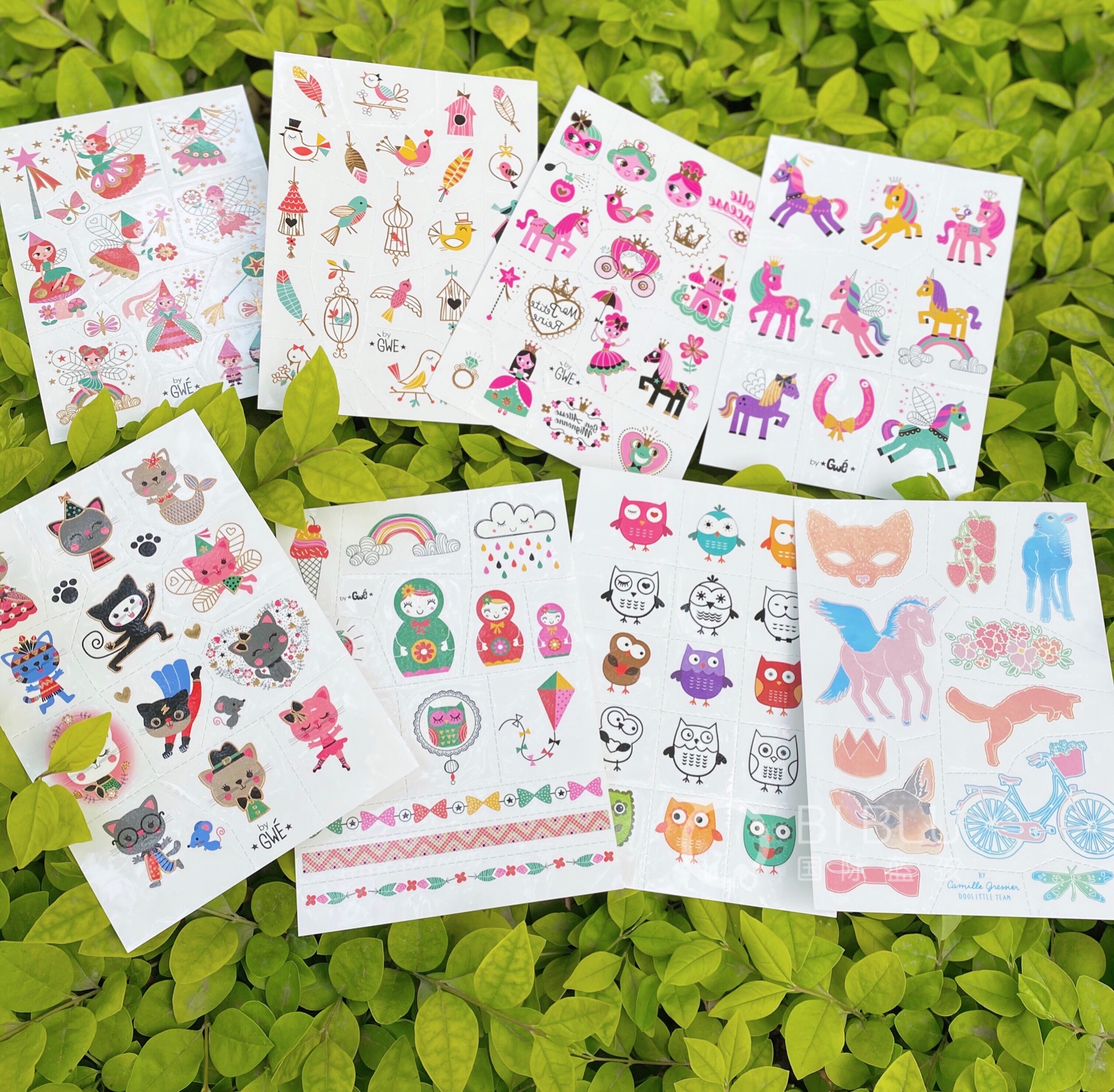 里面的八张,上面的小仙子,公主马车,都教授,小鸟都是有闪亮的纹身贴哦~
